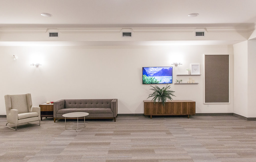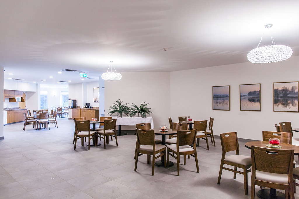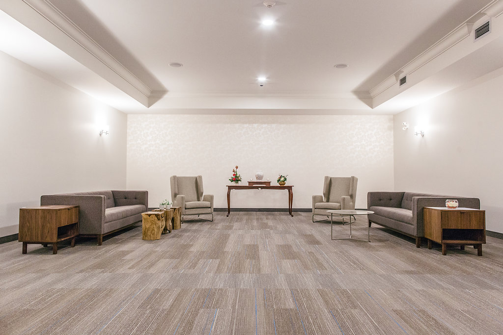 The building's modern architecture and sound system allows the acoustics of both live and recorded music to be carried reverently when and where desired. Recent renovations have enabled us to better serve our families by having dedicated sections for visitations and funerals,separated by offices and a hallway to avoid any sound carry over. Through the main front doors, the triple entrance way leads to the business office, chapel and our spacious reception centre. Updated design draws your eyes to the tray ceiling in the foyer along with modern artwork and furnishings.