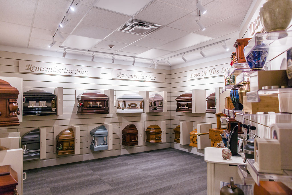 Our visitation section is entered through a separate set of doors in the new addition. Walking in these doors you will be greeted by an attractive reception desk, a cozy bistro area for coffee, tea and light refreshments, a dedicated children’s room with games and toys and three spacious visitation rooms. Each parlor was designed for comfort during visitation with many places to sit, a memory wall for pictures and mementos along with multiple surfaces to display items to personalize your visitation room.